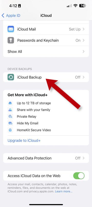 با این حال، روند بسیار ساده است. از آیفون قدیمی خود، برنامه Settings را باز کنید، سپس Apple ID خود را در بالا انتخاب کنید. در تنظیمات iCloud، پشتیبان گیری iCloud را روشن کنید.