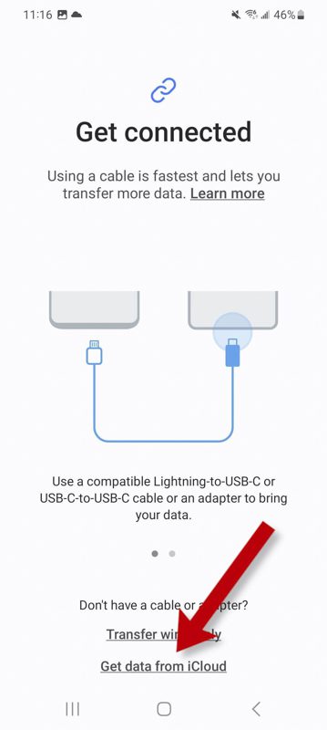 از آنجایی که از برنامه Smart Switch در هر دو دستگاه استفاده می کنید، این فرآیند مانند اندروید کار می کند. در هر دو دستگاه اجازه را صادر کنید و احراز هویت کنید، سپس دستورالعمل‌های  USB اندروید را برای تکمیل انتقال دنبال کنید.
