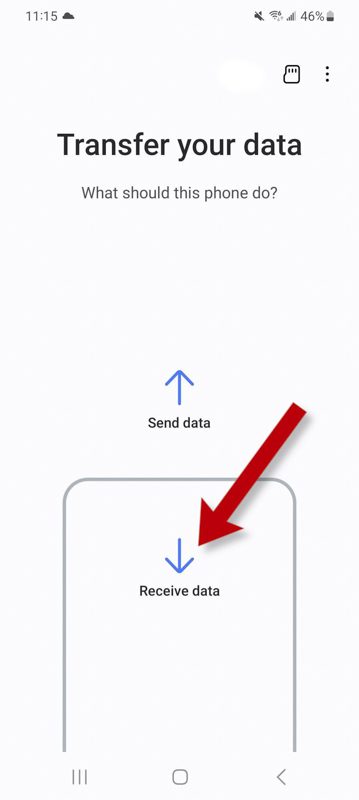 در تلفن جدید، روی Receive data ضربه بزنید، Galaxy/Android را به عنوان منبع انتخاب کنید، سپس Wireless را انتخاب کنید.
