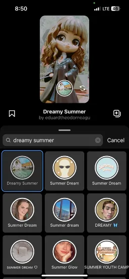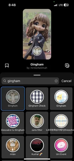 - از بخش پایین صفحه از میان افکتها با آیکون دایرهای، آیکون ذرهبین را پیدا کنید که برای یافتن افکتهای اینستاگرام استفاده میشود. پس از انتخابکردن این آیکون میتوانید در میان فیلترهای موجود، بهترین افکتهای اینستاگرام را براساس سلیقهی خود پیدا کنید.